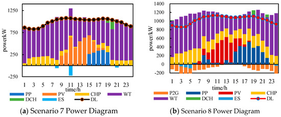 where represents the gas power stored in the gas storage device during the time period t, and denote the charging and discharging efficiencies of the gas storage tank, and refer to the charging and discharging power of the gas storage tank during the time period t, and represent the gas storage states of the gas storage device during the time periods t and t − 1, and denotes the gas storage capacity limit of the gas storage tank.