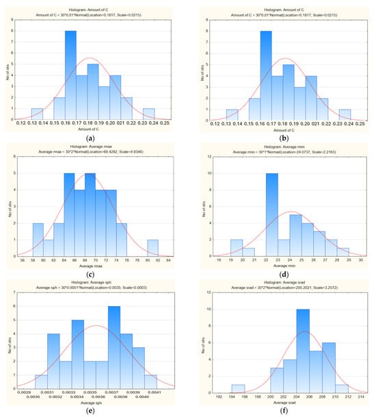 The relationship between the average carbon amount (average approx. 0.1816850 amount of C, kg/m2) and various climate variables was examined. A multiple regression analysis was conducted, and the distribution of variables was visualized through histograms in Figure 2. Additionally, predicted values and goodness-of-fit profiles were analyzed, while spatial distributions were mapped. This section provides a detailed interpretation of the obtained visualizations.