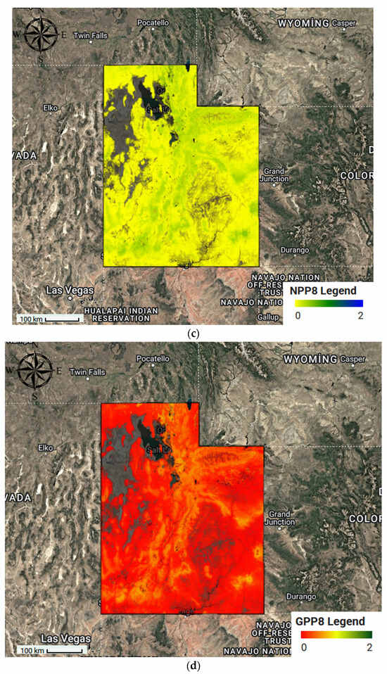 While this study provides valuable insights into the use of Landsat-enhanced MOD17 for monitoring rangeland ecosystems, several limitations must be acknowledged. The assumptions inherent in the MOD17 algorithm, particularly the relationship between vegetation indices and primary productivity, may introduce a degree of uncertainty, especially when applied to regions with distinct environmental conditions. Furthermore, although this study focuses on Utah’s ecosystem, caution should be exercised when extrapolating the findings to other regions. Ecosystem-specific factors, such as climate, vegetation types, and soil properties, can influence the model’s applicability in different geographic areas.