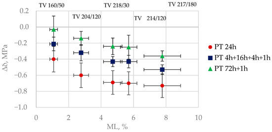 | Δδ | Tensile–shear strength reduction compared to unmodified samples |