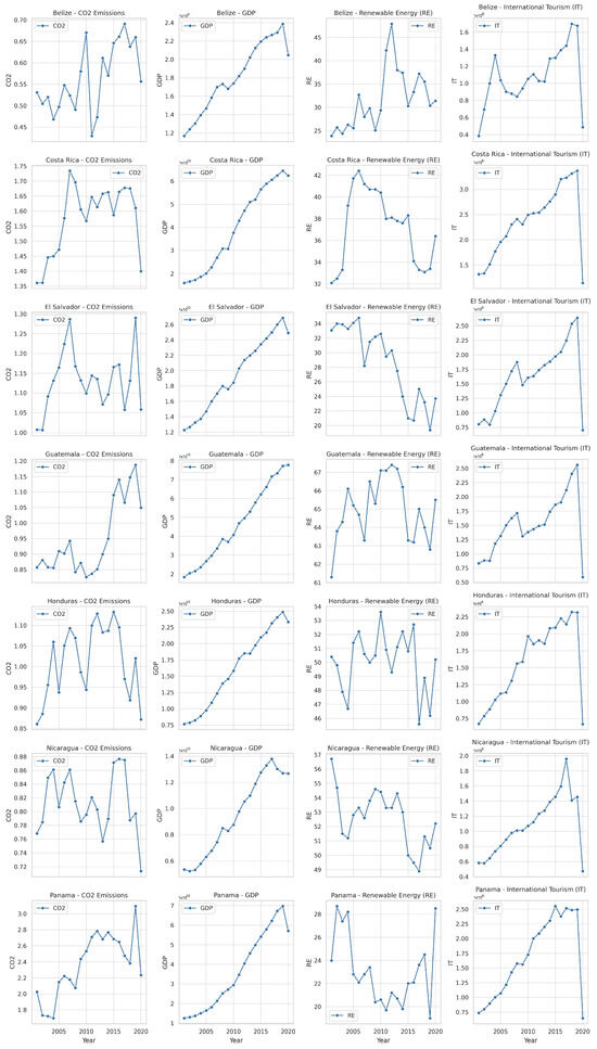 In SICA countries, the rise in CO2 inexplicably brings about both economic and environmental concerns owing to the influence of international tourism on economic growth. Growing numbers of tourists means that there might be even more negativities from these emissions, and the switch to renewable energy might still be slow because of the reliance on fossil fuels [13,14]. Furthermore, even if the contribution of the tourism industry to the rise in CO2 levels has a detrimental impact on the balance between sustainability and economic growth [15], the deteriorating consequences of climate change have made it imperative to restore this balance [16]. Therefore, in order to safeguard the economic development and environmental sustainability of SICA countries, innovative practices and measures to push the CO2 rates down come to the fore as a critical requirement [4].
