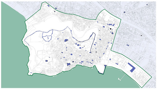An analysis of the official heritage protection documents indicates that a minor percentage of the overall built stock in the old town of Ohrid is protected by law. Specifically, only 77 buildings within the borders of the protected urban core are listed as having monumental value (Figure 6). The list includes different building typologies, such as sacred, residential, public, and fortification buildings. Many historic buildings have lost their monumental status due to ad hoc development.