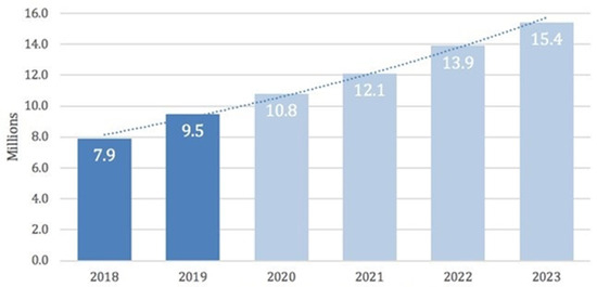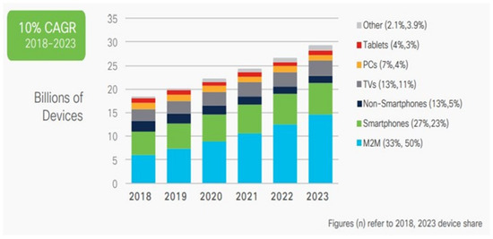 - Cisco. Cisco Annual Internet Report, 2018–2023. 2018. Available online: https://www.cisco.com/c/en/us/solutions/collateral/executive-perspectives/annual-internet-report/white-paper-c11-741490.html (accessed on 21 November 2024).