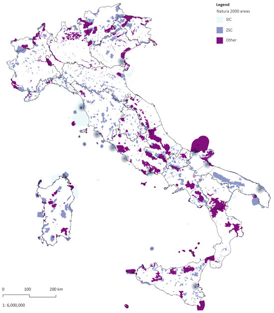 Natura 2000 areas (SICs, ZSCs). Source: re-elaboration by Livia Calcagni using data retrieved from the Italian Ministry of Environment and Energy Security (MASE) for UTM zone 32 N and 33 N.