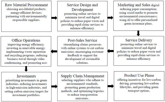 The systematic reduction of direct and indirect emissions across Scopes 1, 2, and 3 reflects the core principles of innovative green marketing. By incorporating carbon-reducing technologies, circular economy models, and transparent communication, companies can align environmental responsibility with innovation, enhancing stakeholder trust and market competitiveness. For the insurance industry, where operational activities are service-driven rather than product-based, Scopes 1 and 2 emissions are relatively low compared with other industries, while Scope 3 emissions constitute a significant proportion of the total carbon footprint [46]. Addressing these emissions is critical to achieving sustainability goals and reinforcing the industry’s commitment to environmental stewardship.