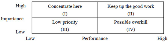 - Oh, H. Revisiting importance-performance analysis. Tour. Manag. 2001, 22, 617–627. [Google Scholar] [CrossRef]