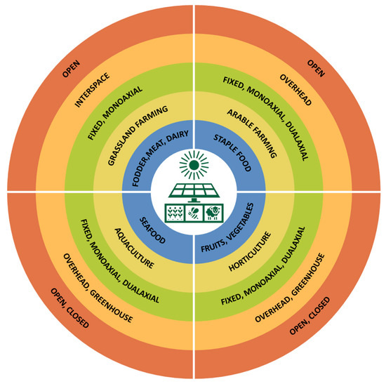 - Jamil, U.; Hickey, T.; Pearce, J.M. Solar energy modelling and proposed crops for different types of agrivoltaics systems. Energy 2024, 304, 132074. [Google Scholar] [CrossRef]