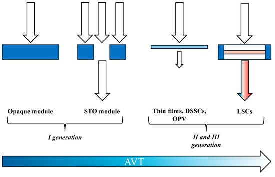 Figure 1 summarizes the possible combinations of characteristics and applications of AV, while Figure 2 illustrates different types of mounting structures for PV modules in AV and Figure 3 shows the transparency of different PV devices.