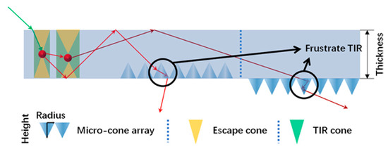 - Xu, Z.; Portnoi, M.; Papakonstantinou, I. Micro-cone arrays enhance outcoupling efficiency in horticulture luminescent solar concentrators. Opt. Lett. 2023, 48, 183–186. [Google Scholar] [CrossRef]