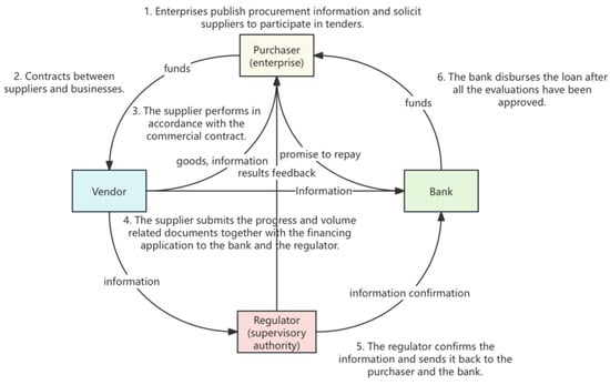 - Supplier Progress Feedback: Suppliers submit progress and workload-related vouchers along with financing applications to banks and regulatory bodies. Upon receipt and verification of this information, the regulatory body provides feedback to the core enterprise.