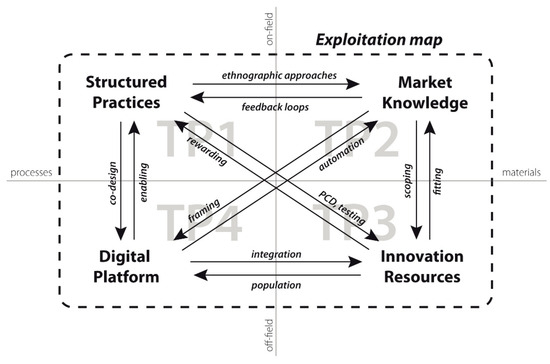 TP5 provides a conceptual and operational framework for enhancing value generation and exchange across the TPs previously described. This goal is synthesized in Figure 1, where the outcomes expected from the four TPs described above are regarded as the main results of an overall innovation process to be targeted by exploitation activities; in particular, the scheme highlights the interconnections among the different TPs, which substantiate the integrated nature of the holistic methodology presented in this paper.