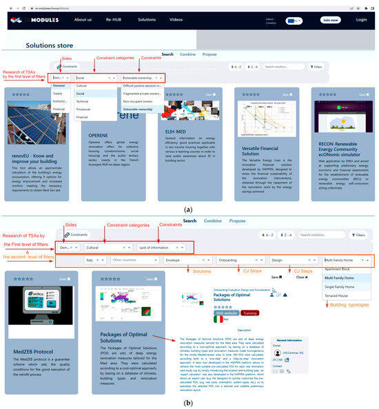 A strong methodological reference for this goal is the GEO Knowledge Hub (GKH) (https://gkhub.earthobservations.org/; accessed on 31 January 2025) solution, a digital repository providing access to knowledge required to build applications of Earth observations with the purpose of revealing all components available and needed for a given application on that topic [54]. Accordingly, TP4 could be implemented by developing a GIS-based ICT platform, which could act as a unique entry point to the different resources or resource combinations addressing specific market challenges, and which could improve the capacity of stakeholders to use innovative resources for supporting their decision-making, lowering the barriers for new users to find the enormous amount of data, tools, applications, and methodologies openly available. In this context, a digital platform could be a turning point for the market uptake of the energy retrofitting of existing residential buildings, connecting the possibility of capitalizing on validated resources in support of the retrofitting process developed by different organizations, in different environments, with different objectives, but presenting evident relevant intersections. While the emergence of open digital platforms has had a deep impact on designing and positioning products, modularity emerged as a key aspect to facilitate openness and successfully scale-up results, as well as to meet with the rapid pace of change and uncertainty typical of high technology markets [55]. To this end, it will be essential to provide a reference framework which would allow the connection and integration of these resources with the end users addressed, by synthesizing local market structures into a comprehensive, modular architecture that could be applied across all the EU. This feature highlights the close connection of TP4 with TP2 and TP3, for the necessity of maintaining a close correlation of the integration frameworks adopted for the clusterization of knowledge, the capitalization of resources, and their digitalization.