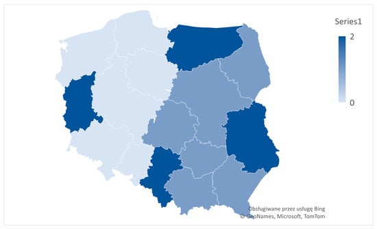 - Available online: https://commons.wikimedia.org/wiki/File:POLSKA_mapa_woj_z_powiatami.png (accessed on 17 February 2025).