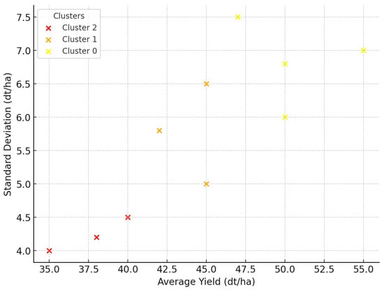 The use of the k-means clustering approach is methodologically suitable for classifying areas into groups of similarities and differences in wheat yield. Clustering enables the researchers to classify voivodeships objectively into high-, medium-, and low-yield groups, which makes policy interventions and resource distribution easier and more focused. This method is thorough in terms of being able to identify natural clusters in data, unveiling patterns that may not be immediately apparent. Furthermore, the method is valid and has been validated by its continuous application in regional studies and agronomic studies, where clustering based on productivity and variability is important in offering region-specific agrarian policies.