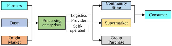 Under this model, the core enterprise of the food supply chain is the wholesale of seafood and agricultural products at the port. Wholesalers link the production, distribution, and wholesale of agricultural products forward and link the circulation and retail links of products backward, as shown in Figure 4.