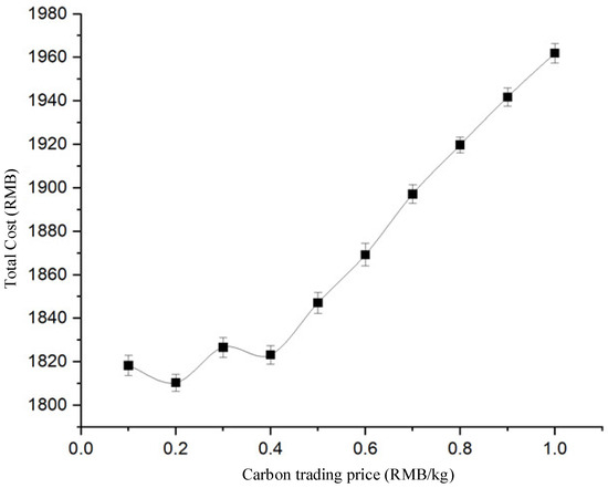 The relationship between the carbon trading price and the total cost.