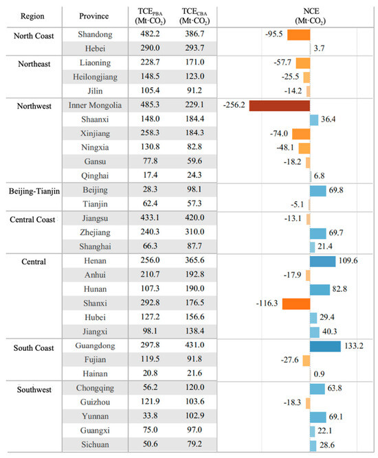 17]. When carbon emissions are accounted for solely under PBA, electricity-exporting provinces bear additional carbon emission pressure from electricity supplied to other regions. These emissions, however, are driven by the consumption demands of importing provinces [