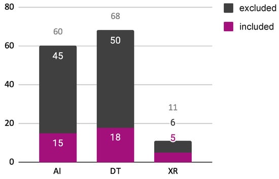 Finally, reviews were found to be particularly relevant, as they thematize the three technologies, DT, AI, and XR, within the context of RMSs.