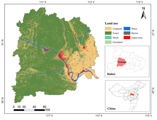 Yichang has a complex terrain with great differences in height. The altitude ranges from 2427 m to 35 m, with a vertical height difference of 2392 m. It shows a trend of gradually descending from west to east, with an average slope of 14.5‰, forming three basic landform types: mountains (high mountains, semi-high mountains, low mountains), hills, and plains. Yichang has four distinct seasons, with water and heat in the same period. The annual average water volume is between 992.1 and 1404.1 mm. There is abundant rainfall, mostly in summer, and the longer precipitation process occurs in June and July. Rain and heat are in the same season, the accumulated temperature is high throughout the year, the frost-free period is long, and the annual average temperature is 13.1 °C~18 °C. The water system in Yichang belongs to the outflow water system, with the Yangtze River as the main artery. There are many rivers, high density, and abundant water, with an average annual total water volume of 474.14 billion cubic meters. There are 99 rivers with a length of more than 10 km in the territory, of which 64 rivers have a catchment area of more than 50 square kilometers, with a total length of 3793 km, and the total catchment area accounts for 83.9% of the city. The hydropower reserves are more than 30 million kilowatts, and the exploitable amount is 25 million kilowatts. It is one of the regions with the richest hydropower resources in China. The overview of the study area was shown in Figure 1.