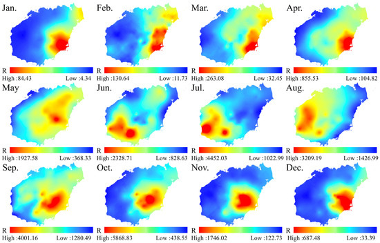 Average rainfall erosivity across each month of the year (Unit: MJ·mm·hm−2·h−1·month−1).