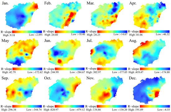 Monthly slope trend of rainfall erosivity factors.