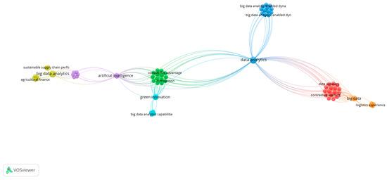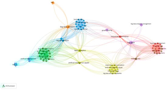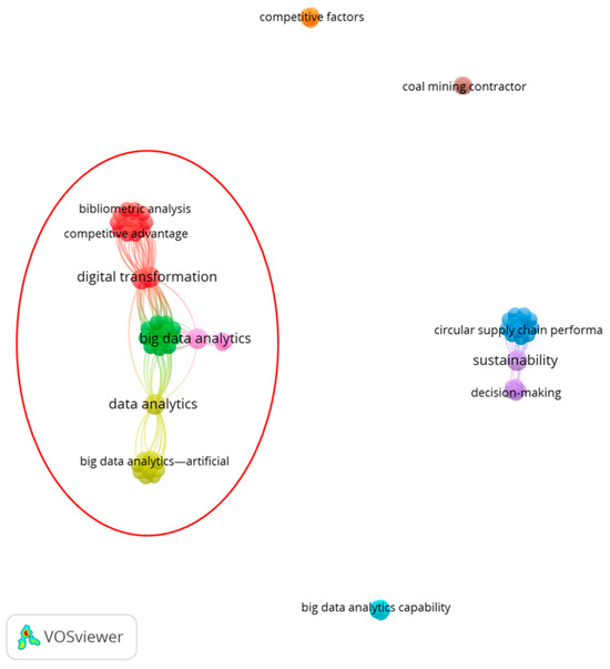 The visualisation of the keyword clusters related to “sustainability business performance” and “big data analytics capability” or “big data”. Source: created by the authors using VOSviewer.