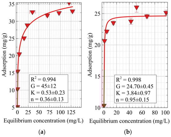 where Gmax is the maximum sorption capacity (mmol/g); Ce is the equilibrium concentration of Pb (mmol/L); and Kf is the Freundlich constant. It characterizes the relative adsorption capacity. It represents the value of the adsorption at an equilibrium concentration of unity and Kl and Klf are the constants of adsorption equilibrium, which characterize binding energy between adsorbent and adsorbate, and m is the index of heterogeneity of exchange centers, which characterizes changes in heat of adsorption, depending on degree of filling.