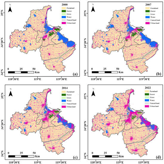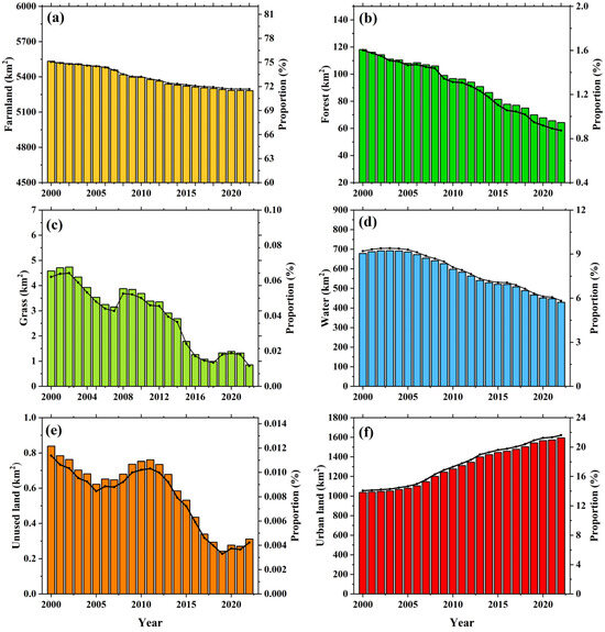 | Time | Farmland | Forest | Grass | Water | Unused land | Urban land | |