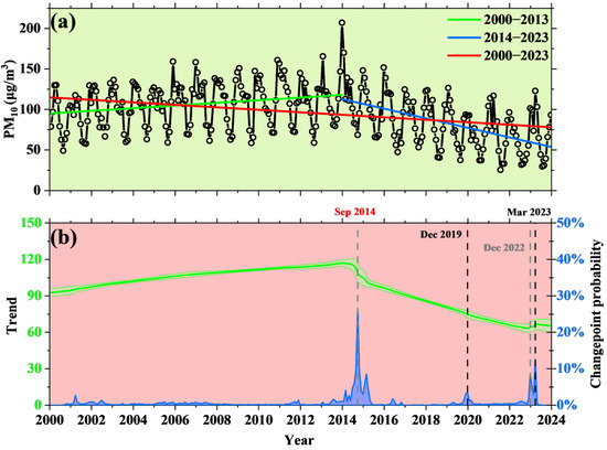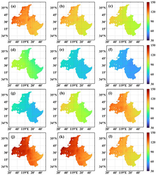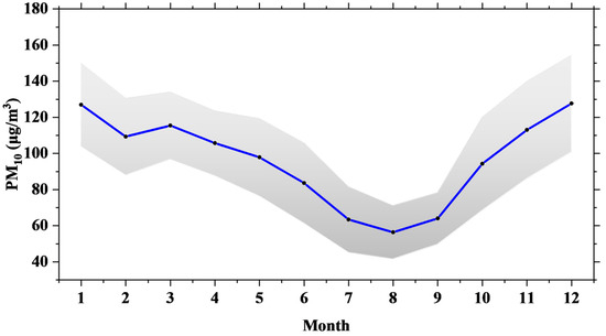3.2. Spatiotemporal Distribution Characteristics and Trends of PM10