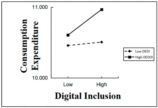 As evidenced by Table 4, the coefficient of the interaction term between digital inclusion and the level of digital economy development is markedly positive, thereby indicating that the moderating effect of the level of digital economy development is both positive and significant. In other words, the advancement of the digital economy markedly amplifies the impact of digital inclusion in stimulating rural household consumption.