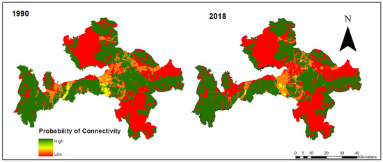 One of the interesting findings of this study is that, while no significant spatial change was observed between 1990 and 2018 in habitats with a high quality value and in habitat patches important in terms of connectivity in the study area, there was the development of significant resistance surfaces that could prevent the creation of corridors that would support connectivity between these areas. It is clear that landscape connectivity is an important parameter for supporting biodiversity and guaranteeing ecological functioning. Therefore, it is important to conduct detailed research and develop innovative approaches to alternative corridor design solutions.