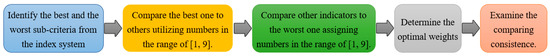 Secondly, the five experts need to compare the significance degree of the best sub-criterion with others and others with the worst sub-criterion assigning a score from 1 to 9. Values from 1 to 9 demonstrate that the critical degree improves progressively. Significant comparison results for the best sub-criterion to others are listed in