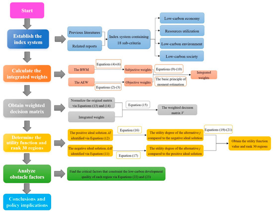 Based on the actual data, the standardization matrix can be calculated through Equations (13) and (14). Then, the weighted standardization matrix can be calculated via Equation (15). Afterward, we can calculate the