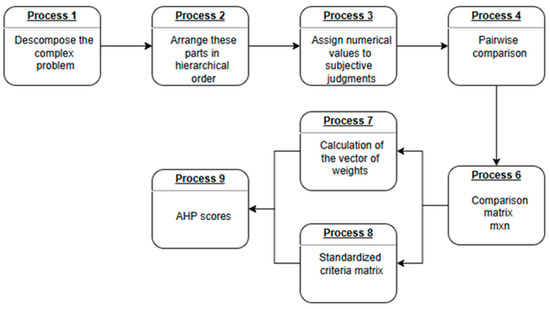 The AHP method was then applied, following the procedure shown in Figure 2.