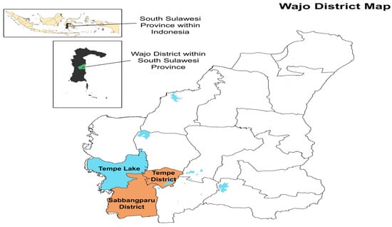 Situation of the study sites: Sabbangparu and Tempe subdistricts within Wajo district, South Sulawesi, Indonesia [59,60].