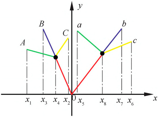 The values on the x-axis (e.g., “x1”, “x2”, “x3”) in Figure 3 represent the x-coordinates of control points or key points of the V-shaped curve. These values define the geometric positions that govern the shape and segmentation of the curve. x1, x2, x3, etc., denote critical points along the x-axis where the curve’s behavior or properties change. These points are used to specify the domains of the piecewise-defined curve functions. The line “l” represents the functional expression of the V-shaped curve within the range from a to c. By adjusting the parameter k, the shape of V-shaped curve can be altered.