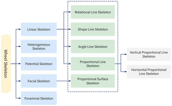 As shown in Figure 5, these five primary categories of skeletons and their respective subtypes are illustrated to depict the hierarchical relationships and interconnections between various components. The specific skeleton configurations and the number of structural symbols within each category may vary depending on the wheel hub type and design.