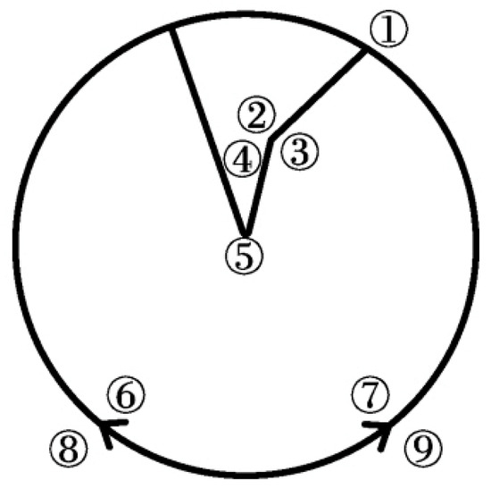 - Serial Numbers 8 and 9 (third rotational skeletal line): These define the mirrored rotational direction of the V-shaped curve along the centerline. A left arrow (←) indicates a clockwise rotation, whereas a right arrow (→) signifies a counterclockwise rotation.