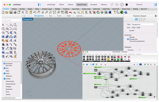 - Experimental group: Participants used the VDMC-based design approach, which was integrated into Rhinoceros 7.0 with the Grasshopper plugin. This parametric modeling tool allowed designers to generate multiple wheel design variants through parametric adjustments. Key parameters such as curvature, symmetry, and facial detailing were manipulated, enabling rapid iteration while ensuring brand consistency.
