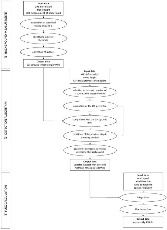 - Darynova, Z.; Blanco, B.; Juery, C.; Donnat, L.; Duclaux, O. Data assimilation method for quantifying controlled methane releases using a drone and ground-sensors. Atmos. Environ. X 2023, 17, 100210. [Google Scholar] [CrossRef]