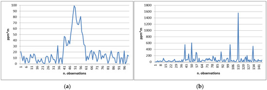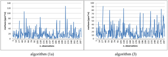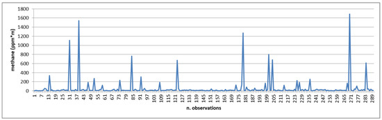 - Only in the presence of a minimum number j of consecutive values that have exceeded the background threshold, an actual emission of methane is considered in the original data set.