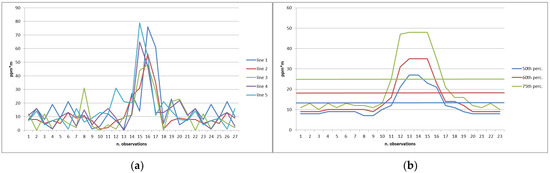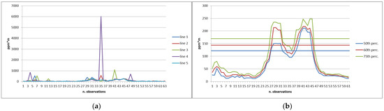 - The detection threshold of the 60th percentile on 25 readings has a performance similar to the previous one but with lower accuracy in the flow estimation; however, it does not report the validation of outliers. Therefore, it can be considered more conservative than the previous one but with a good level of effectiveness in the identification of the plume and in its estimation.