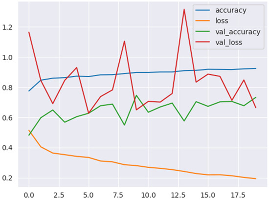 Accuracy is the primary evaluation metric specified in the code. Accuracy measures the proportion of correctly classified instances over the total number of instances in the dataset. While it is a useful metric for overall performance, it may not tell the full story in imbalanced datasets. Table 6 below also provides some facts, including the loss and accuracy of the image processing code.