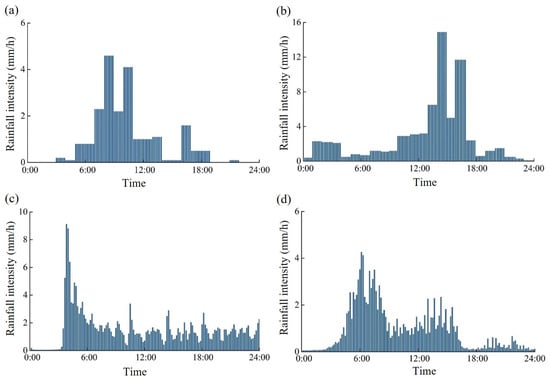 Typical rainfall sequence: (a) Sample 1 from OER; (b) Sample 2 from OER; (c) Sample 1 from SER; (d) Sample 2 from SER.