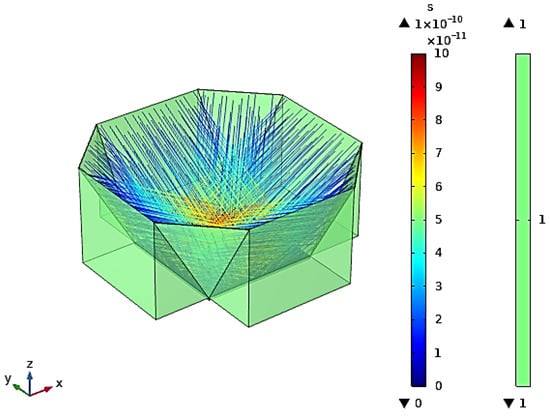 The ray path from the lighted surface (the rays’ source) on the cell of the EDVC to the PV is shown in Figure 15. The ray distribution shows uniform distribution over the cell.