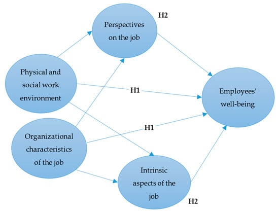 Consequently, based on the assertions from previous research, this paper proposes its first hypothesis regarding the relationship between the work environment, organizational job characteristics, and employees’ well-being: