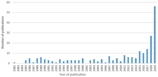 “Number of research articles that used the term “regenerative agriculture”, from 1982–2019” (Open Access article/image: https://www.frontiersin.org/journals/sustainable-food-systems/articles/10.3389/fsufs.2020.577723/full?ref=rewildingmag.com) (accessed on 15 February 2025).