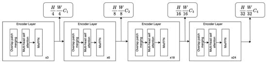The MiT backbone is a hierarchical multistage transformer architecture optimized for efficient visual understanding. Figure 5 illustrates the hierarchical structure within the MiT backbone.