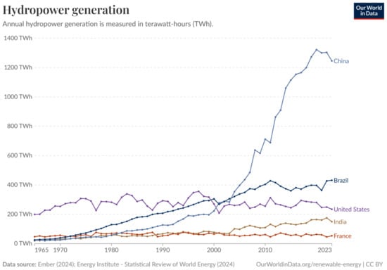 - Wikipedia. List of Largest Hydroelectric Power Stations. Available online: https://en.wikipedia.org/wiki/List_of_largest_hydroelectric_power_stations (accessed on 18 December 2024).
