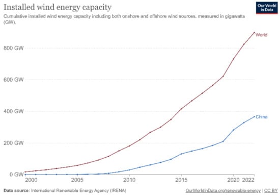 In February 2023, the China National Energy Administration (NEA) predicted that generated wind and solar power would double by 2025 [28]. China will continue to lead global wind power development following its ‘30–60’ pledge; moreover, the Chinese government committed to non-fossil fuels, providing 25% of the country’s primary energy mix by 2030.